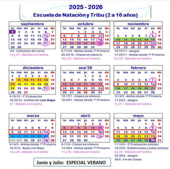 Descarga tu calendario en PDF para ver la información de las 'Clases Especiales'